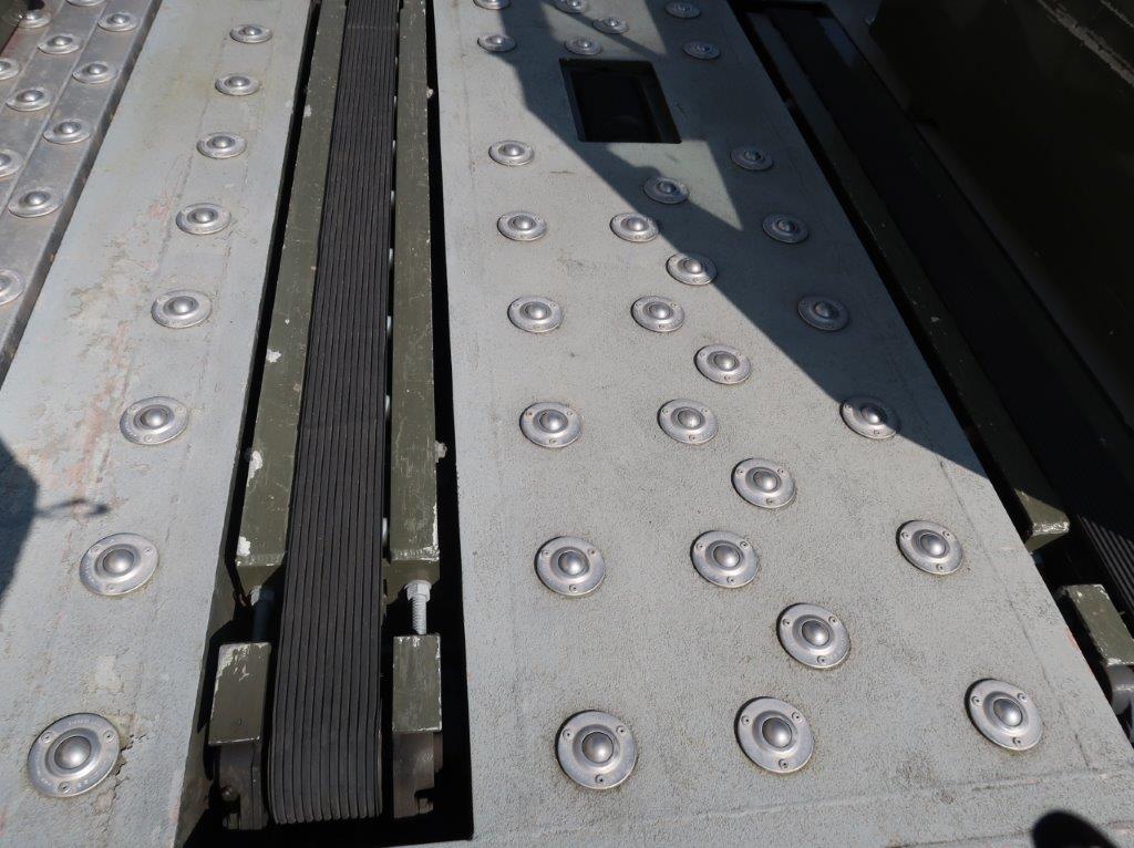 Load platform Length between stops 9,240mm, width between main guides 2,775mm, Width between ?drop in? guides 1,825mm, 4 Zone Operator selectable longitudinal variable speed powered pallet drives, 4 off 108 x 88 inch pallet capacity, powered variable speed pallet side shift, platform pitch ?5?, platform Roll ?5?, platform side shift ?51mm ?0.8?, freight lashings 6 off per side, powered pallet stops, heavy duty rollers and stainless steel ball units for pallets and containerised loads, multiple heavy duty impact resistant powered pick up rollers fitted to platform front and rear, shock absorbing rubber buffers for soft aircraft interface, easily deployable, hinged walkways and safety handrails fitted to both sides of the load platform with adjustable trombone/folding sections to accommodate differing aircraft profiles