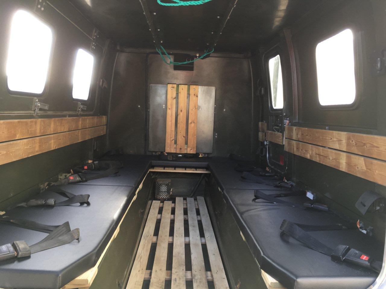 Shown here is a version combining a soft top body at the front and a hard top rear personnel body.