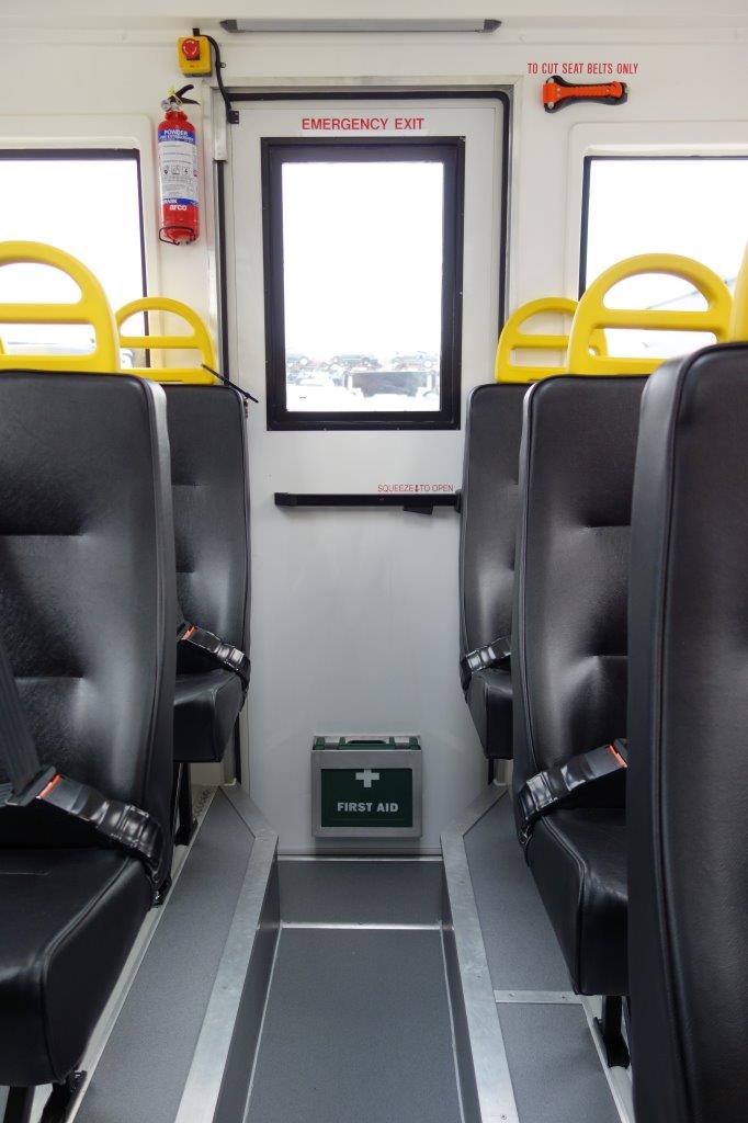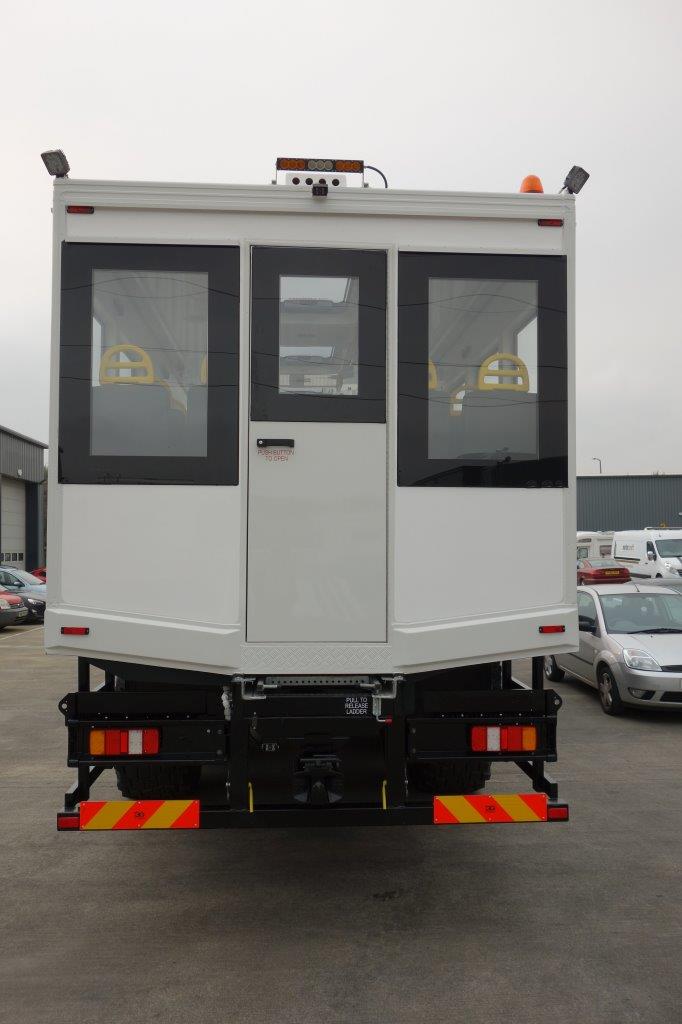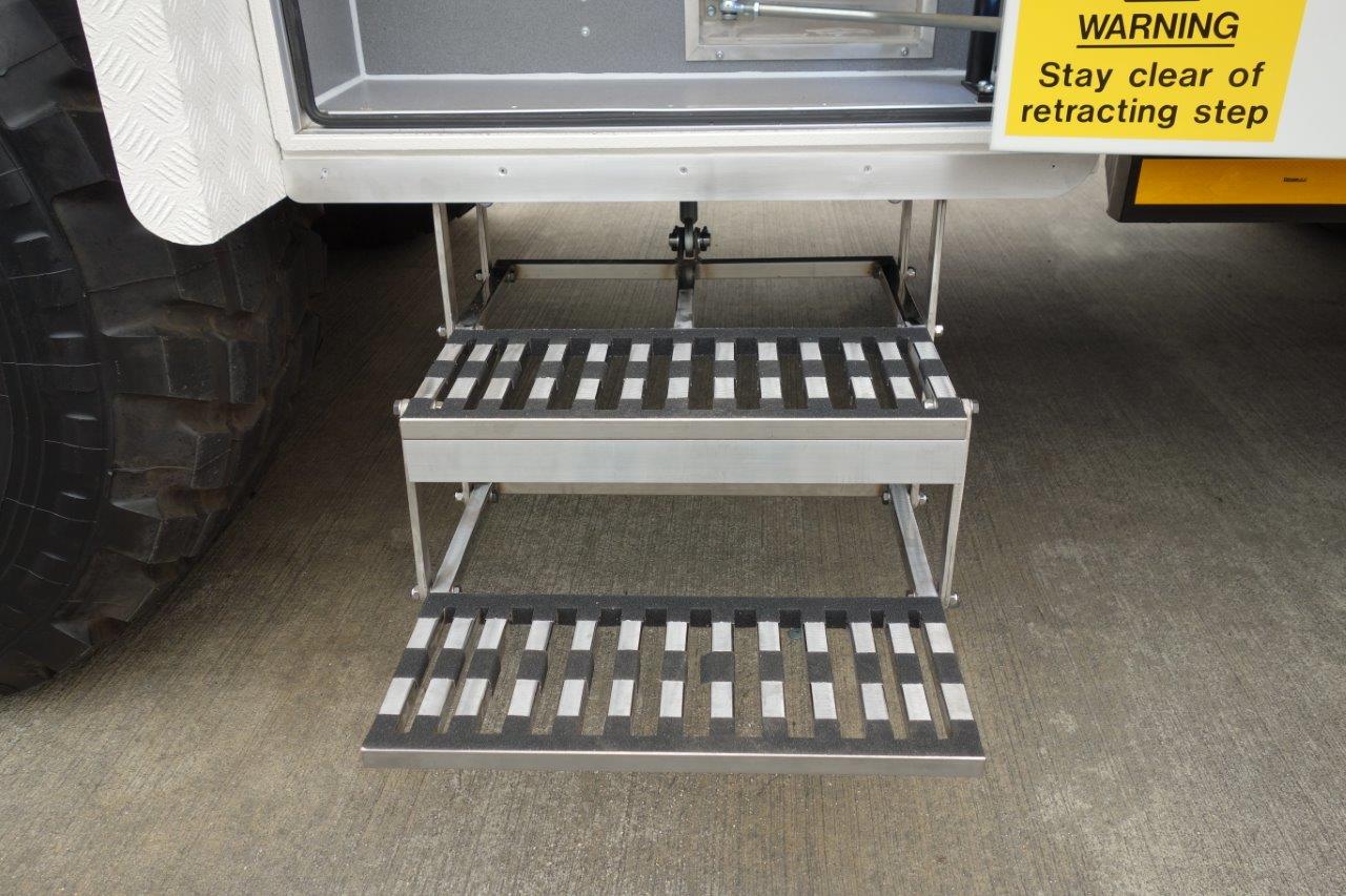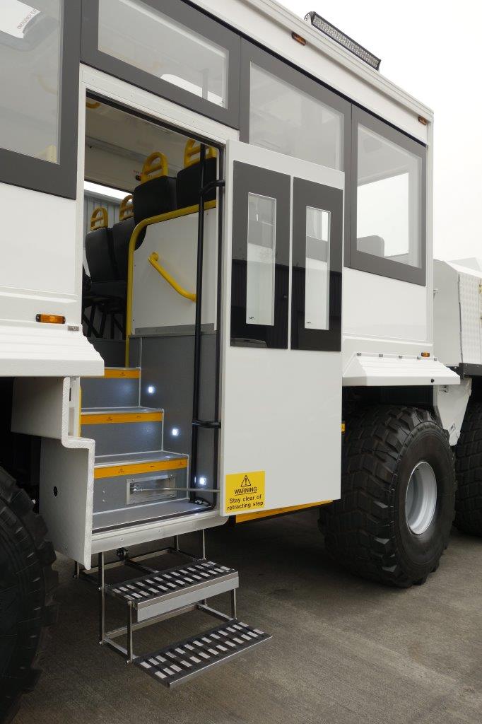 The high ground clearance for rough terrain coupled with the wider axles makes this vehicle well suited to the (as in this case) the construction of a bespoke body to accommodate up to 66 passengers in air conditioned comfort.