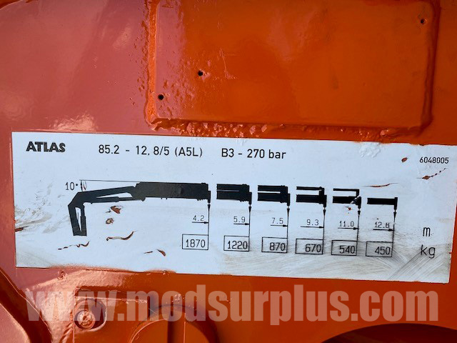 Fitted with a Atlas 82.2 Hydraulic crane with a max reach of 12,8 metres