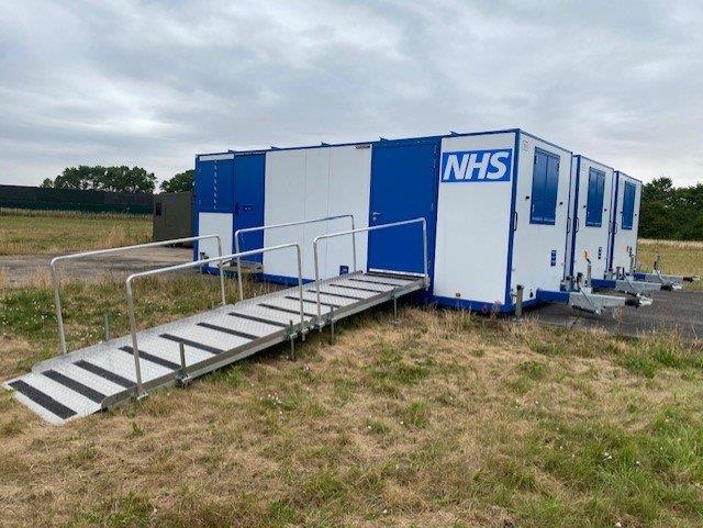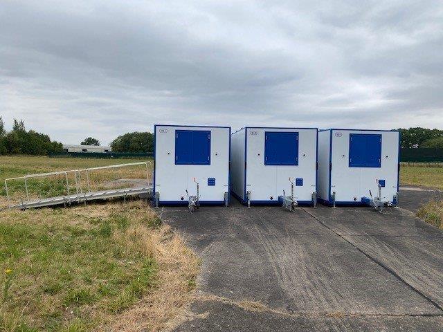 Large quantity available of mobile connecting units. The units have been built to a high quality and can be used for many different applications. Built in 2020/2021 specifically for medical purposes, each set comprises 3 individual cabins that link together to provide nearly 500 sqft of internal area.
