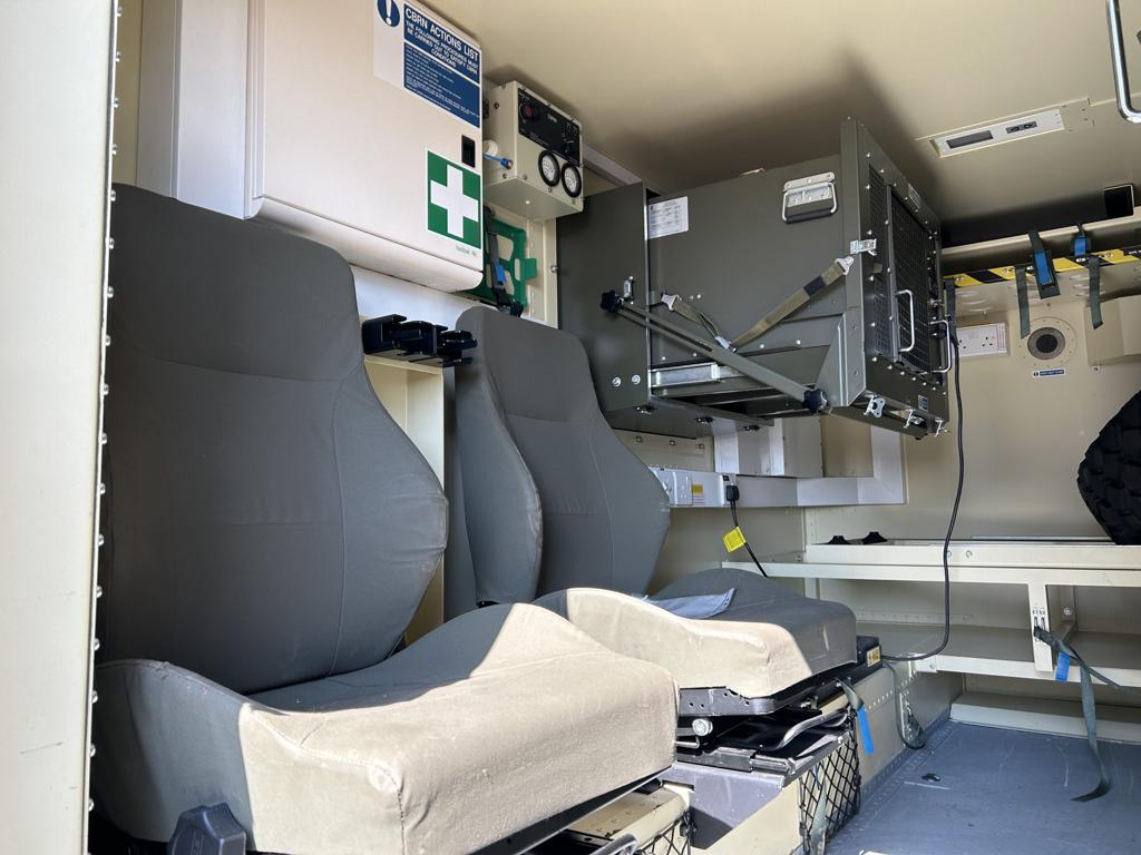 Fitted with the insulated box body which includes 1x Harrington 10 KVA 3 phase diesel generator as well as 2x Eberspacher air conditioning units. Side door and rear door access with ladder