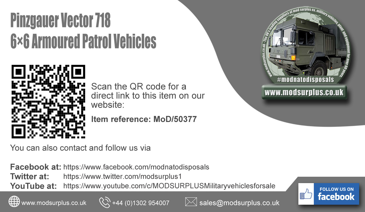 Pinzgauer Vector 718 6x6 Armoured Patrol Vehicles - Govsales of mod surplus ex army trucks, ex army land rovers and other military vehicles for sale