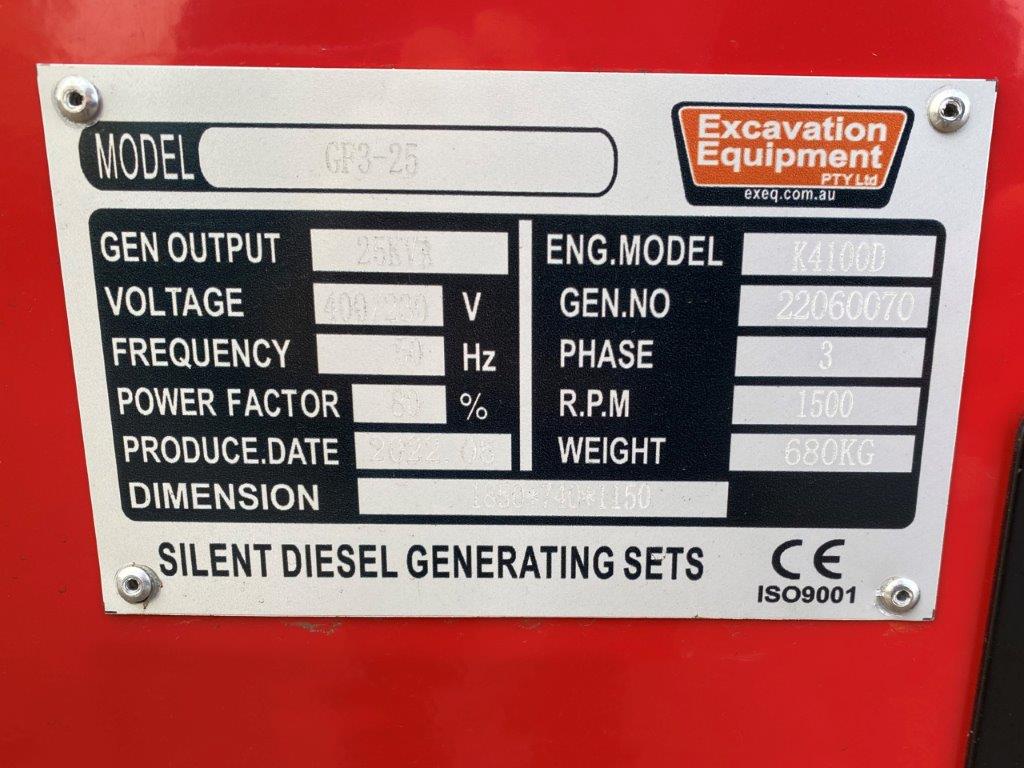 Unused 25 KVA GF3-25 Generator Set - MoD Ref: 30010