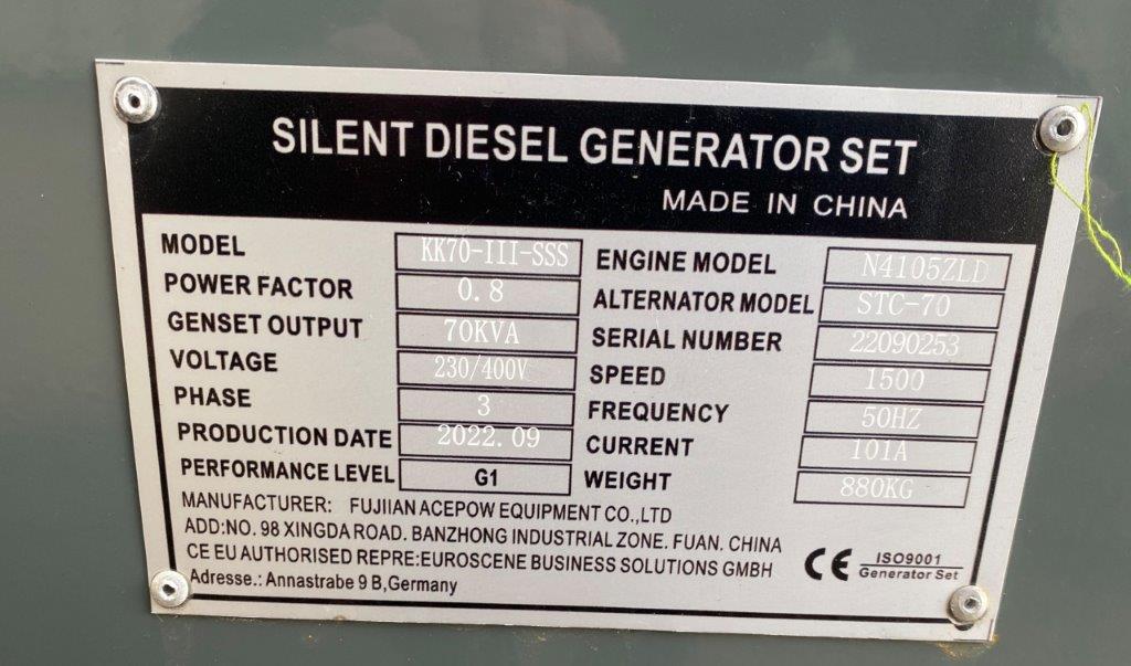 Unused 70 KVA Kawakenki Generator Set - Govsales of mod surplus ex army trucks, ex army land rovers and other military vehicles for sale