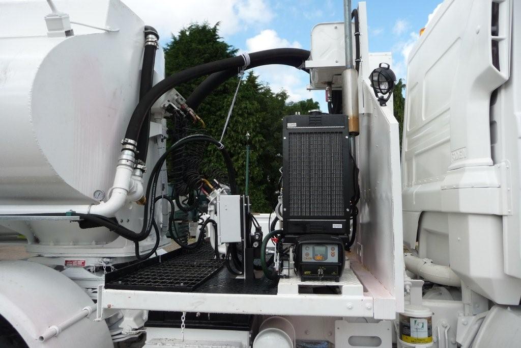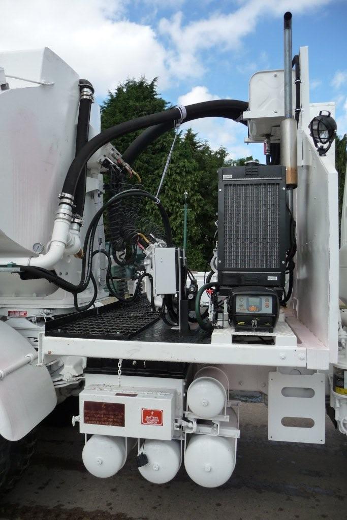 The vehicle has been modified as a Dust Suppression Truck with an externally mounted independent diesel engine'd pump which delivers water to a spray plate at the rear of the vehicle as well as feeding a 360 degree monitor and separate hose connections.