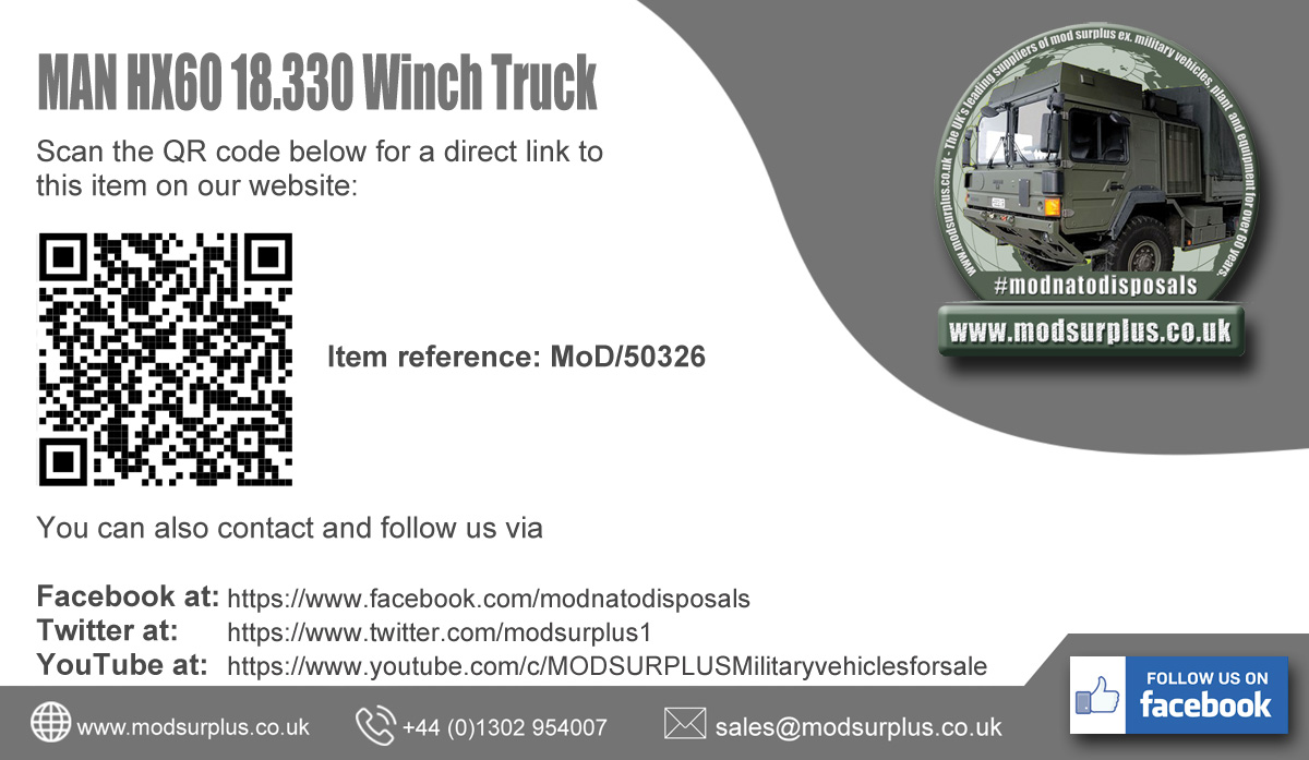 MAN HX60 18.330 4x4 Cargo Winch Truck - MoD Ref: 50326 |