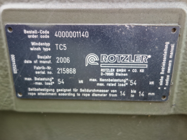 • Rotzler TR200 20 ton hydraulic main winch c/w remote control