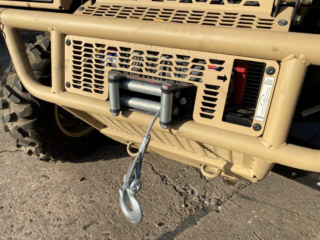 For easy transport of soldiers or equipment, the vehicle also has a front storage rack, multiple D rings, weapons storage and a rear tipping body with fold down sides. The vehicle is also made to be air droppable. Some vehicles are also fitted with a front mounted Warn electric winch