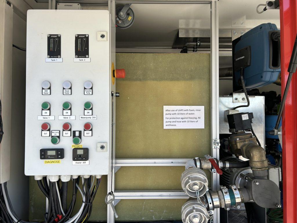 1x Rossenbauer UHPS extinguishing system 38/l min with integrated foam proportioning system and retractable 60m reel and lance