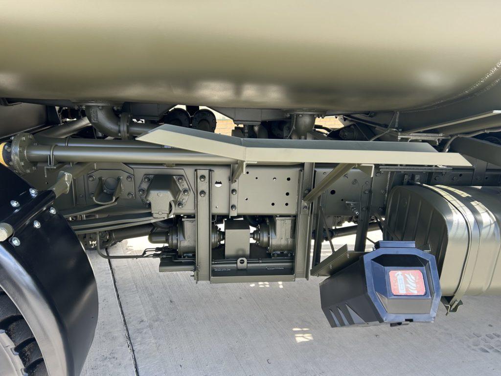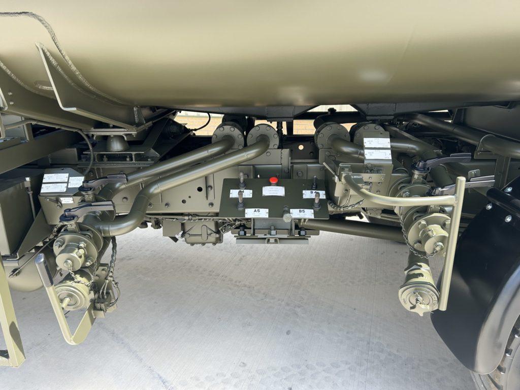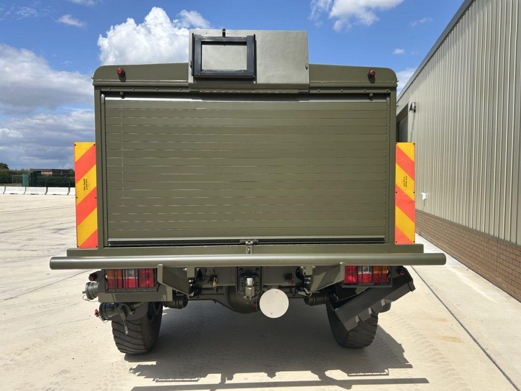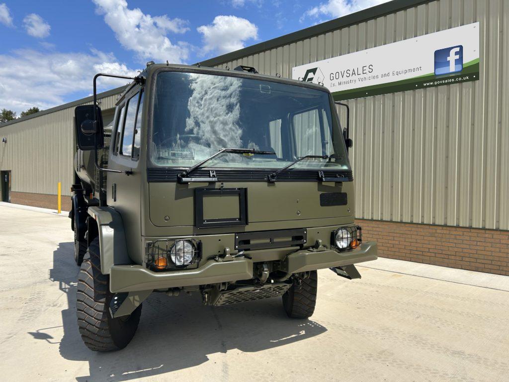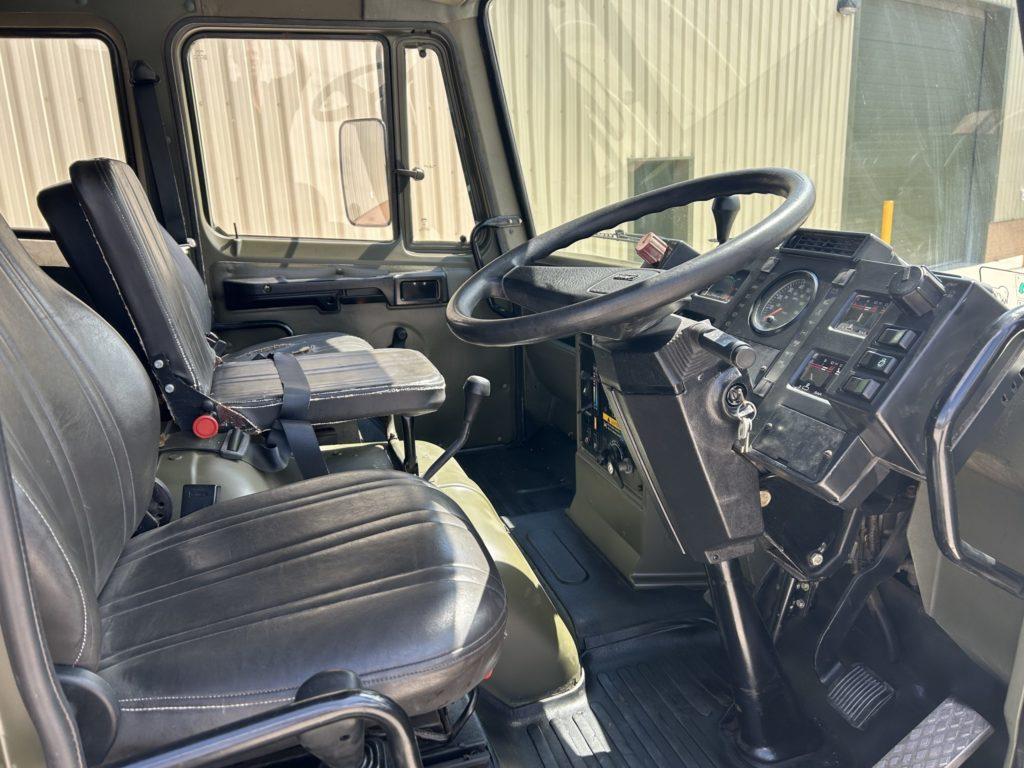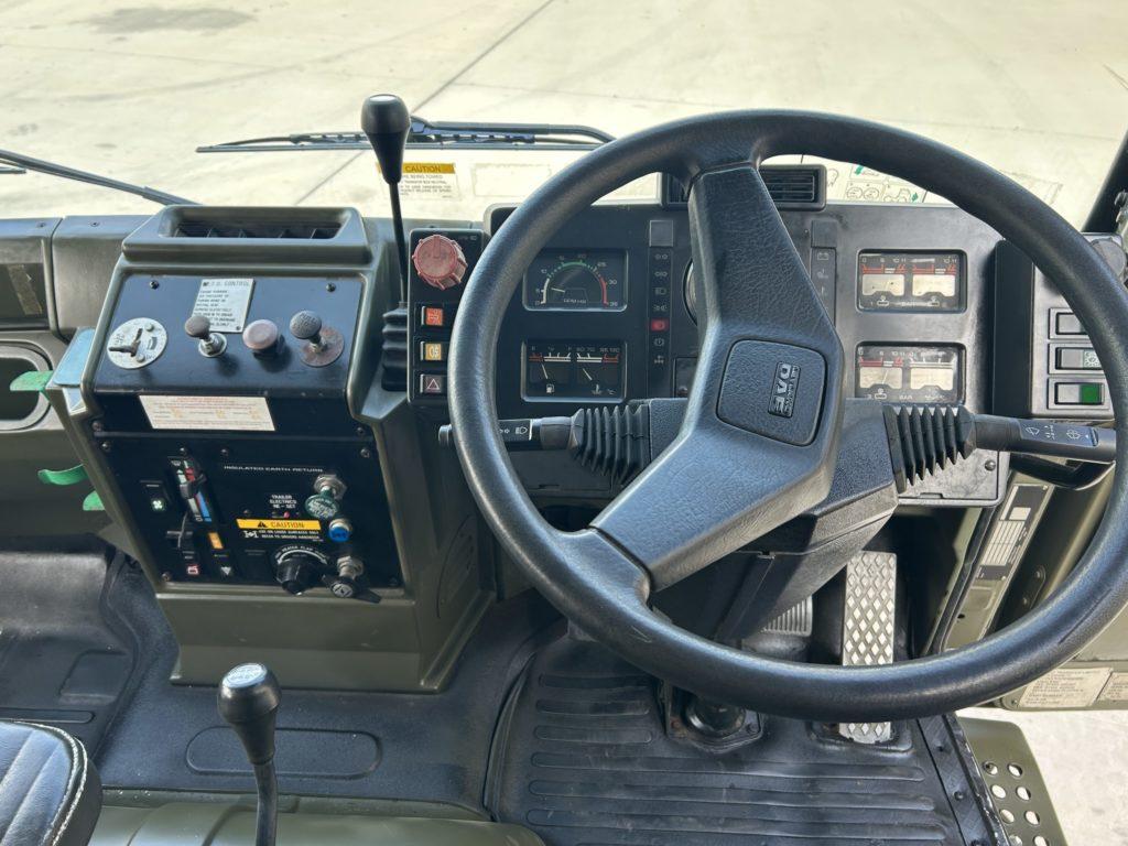 Cummins 6 cylinder 5.9 litre turbo diesel engine, 5 speed gearbox with high/low range transfer box, centre differential lock, power steering, 3 seat tilting cab, front + rear NATO hitches, air at rear for a trailer, 24v electrics.