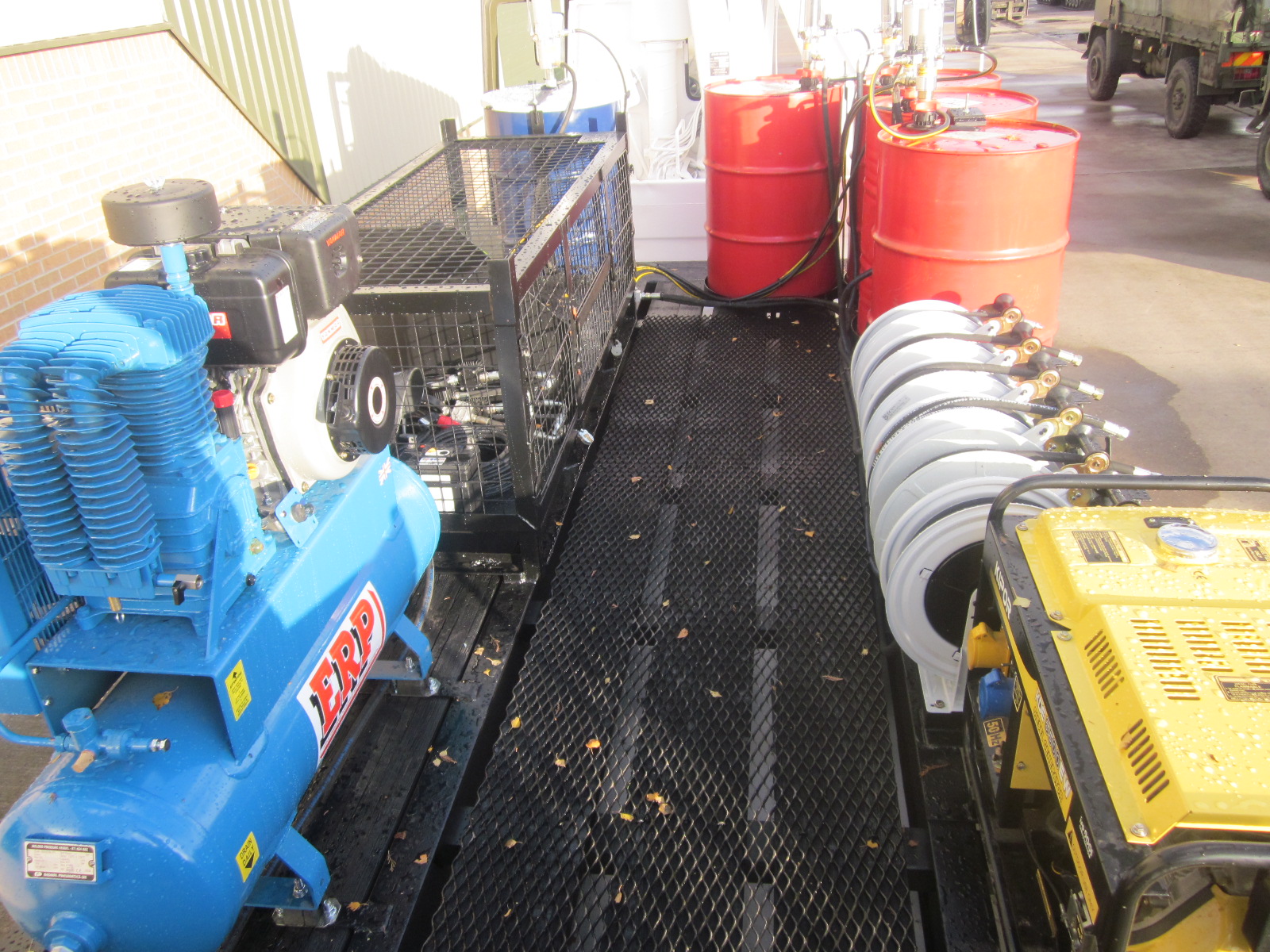 4x 205 litre drums for oil with air operated pumps