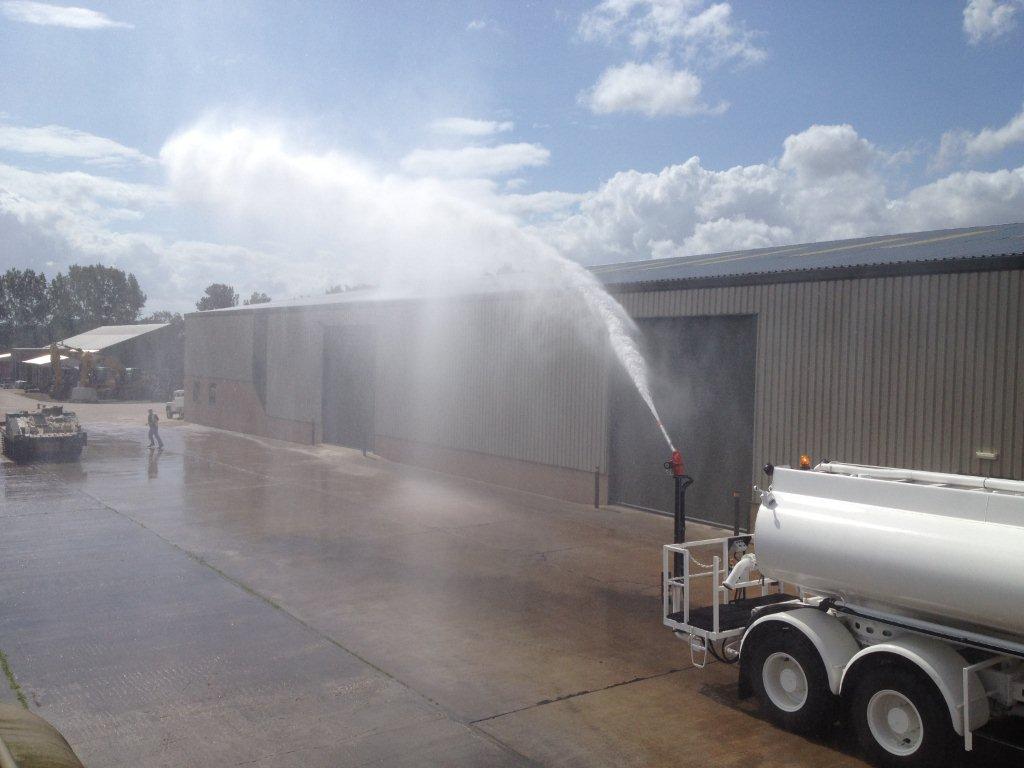 The vehicle has been modified as a Dust Suppression Truck with an externally mounted independent diesel engine'd pump which delivers water to a spray plate at the rear of the vehicle as well as feeding a 360 degree monitor and separate hose connections.