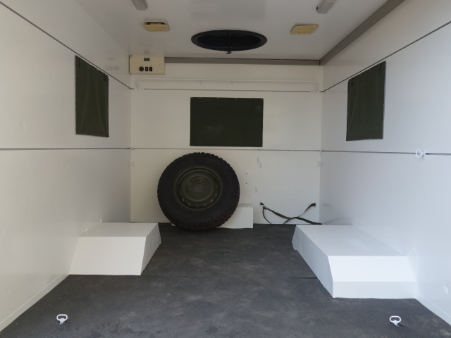 The rear body includes lighting, heating system, front sliding window to driver and roof escape hatch