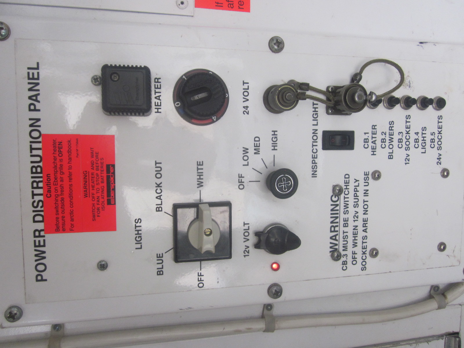 communication body etc Currently fitted with stretcher racks and seating which could easily be removed, also includes a Eberspacher heater system and power distribution panel