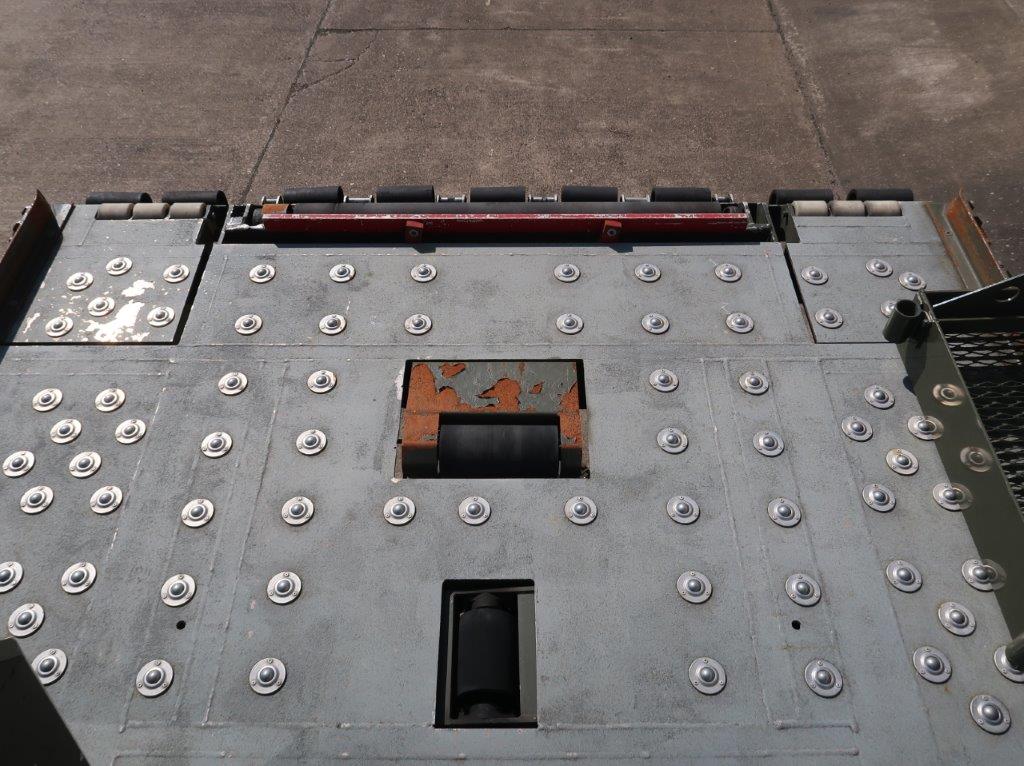 Load platform Length between stops 9,240mm, width between main guides 2,775mm, Width between ?drop in? guides 1,825mm, 4 Zone Operator selectable longitudinal variable speed powered pallet drives, 4 off 108 x 88 inch pallet capacity, powered variable speed pallet side shift, platform pitch ?5?, platform Roll ?5?, platform side shift ?51mm ?0.8?, freight lashings 6 off per side, powered pallet stops, heavy duty rollers and stainless steel ball units for pallets and containerised loads, multiple heavy duty impact resistant powered pick up rollers fitted to platform front and rear, shock absorbing rubber buffers for soft aircraft interface, easily deployable, hinged walkways and safety handrails fitted to both sides of the load platform with adjustable trombone/folding sections to accommodate differing aircraft profiles