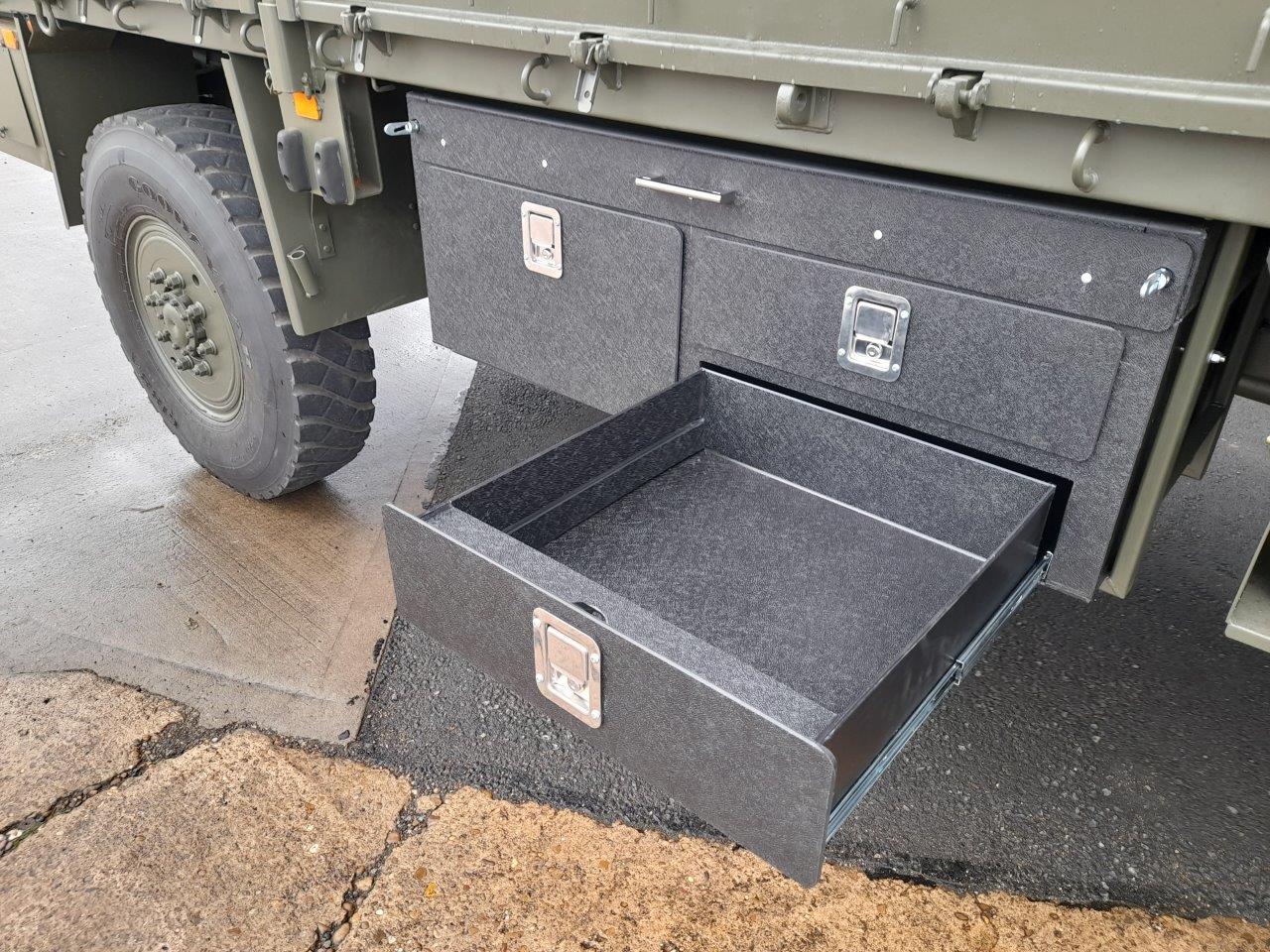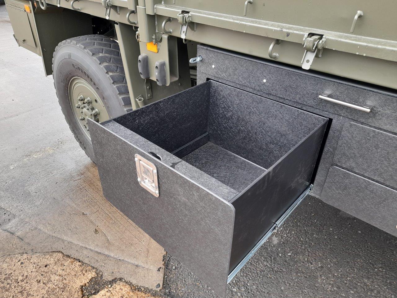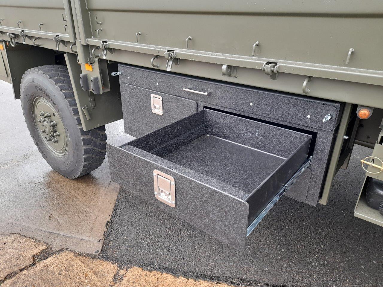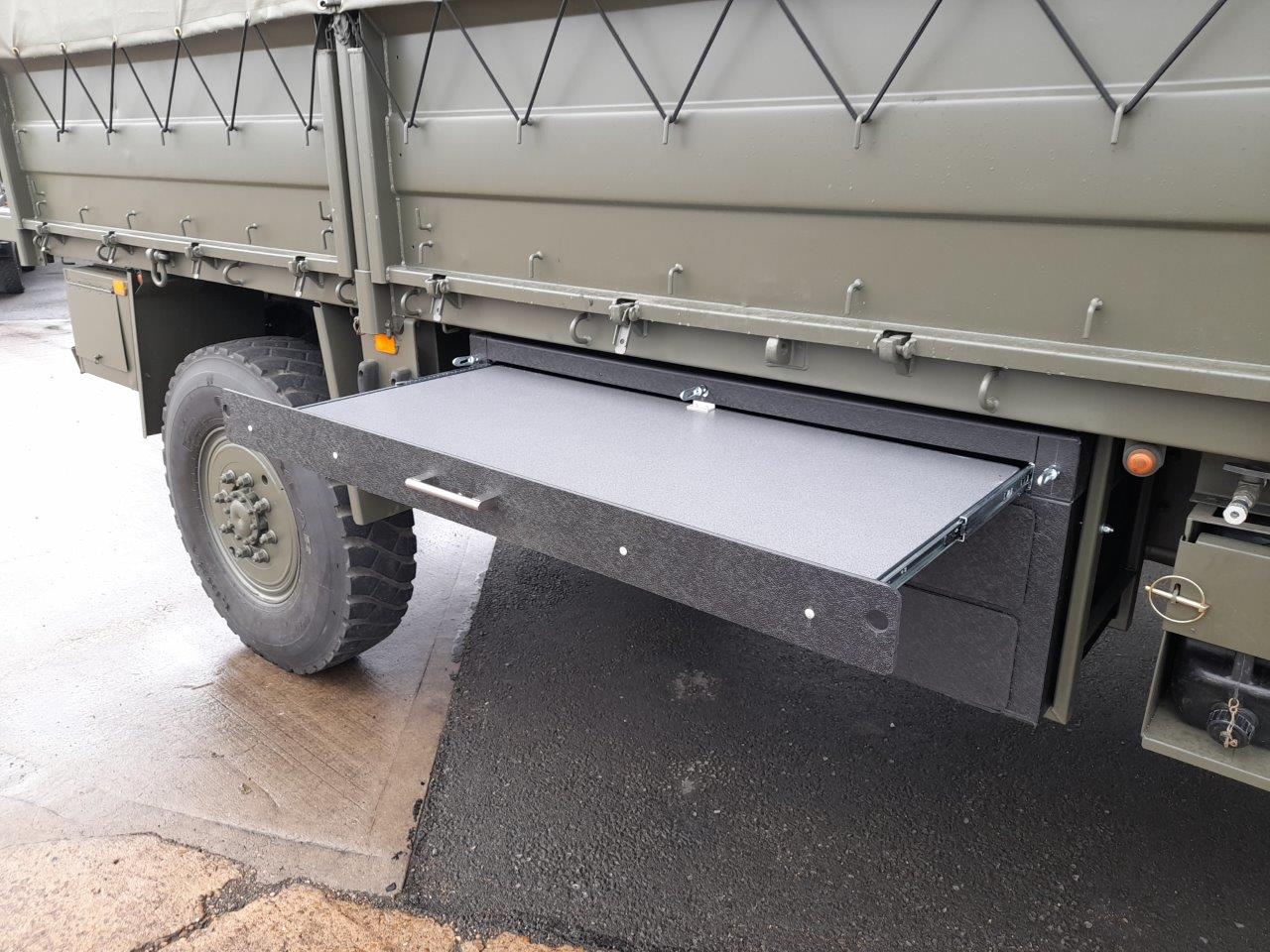 Option (additional cost) to supply with seat belts and rear steps as well as gun bag rack, consumables cupboard, coat rack and introducing the new chassis mounted polymer based stowage / table combination