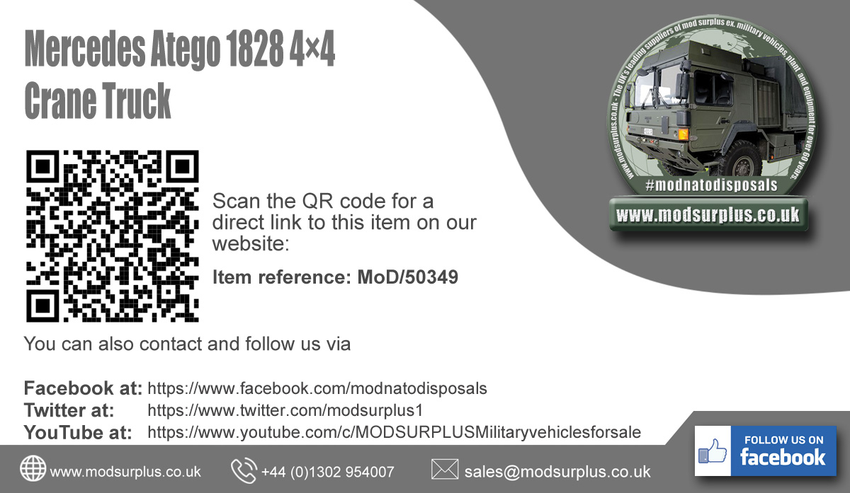 Mercedes Atego 1828 4x4 Crane Truck - MoD Ref: 50349