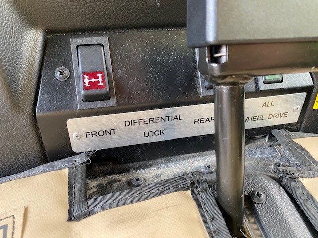 Standard equipment includes steps to front doors, grab handle for front passenger, exterior rear view mirrors, brush guard, fuel tank guard, fuel filter in tube, water separator, and NATO pintle towing device.
