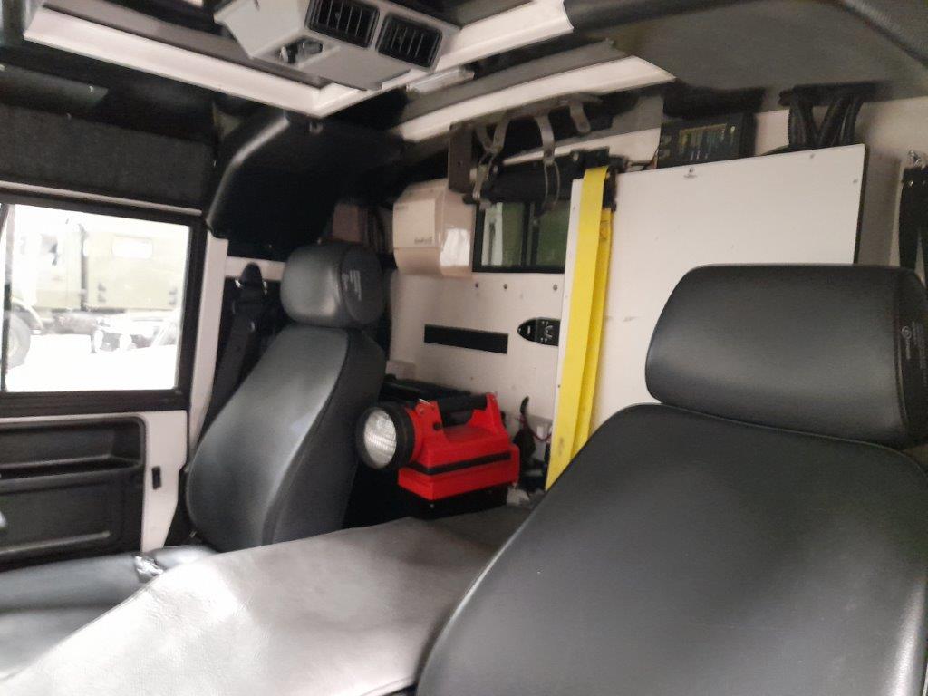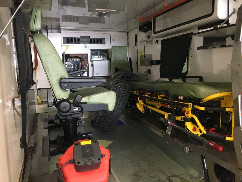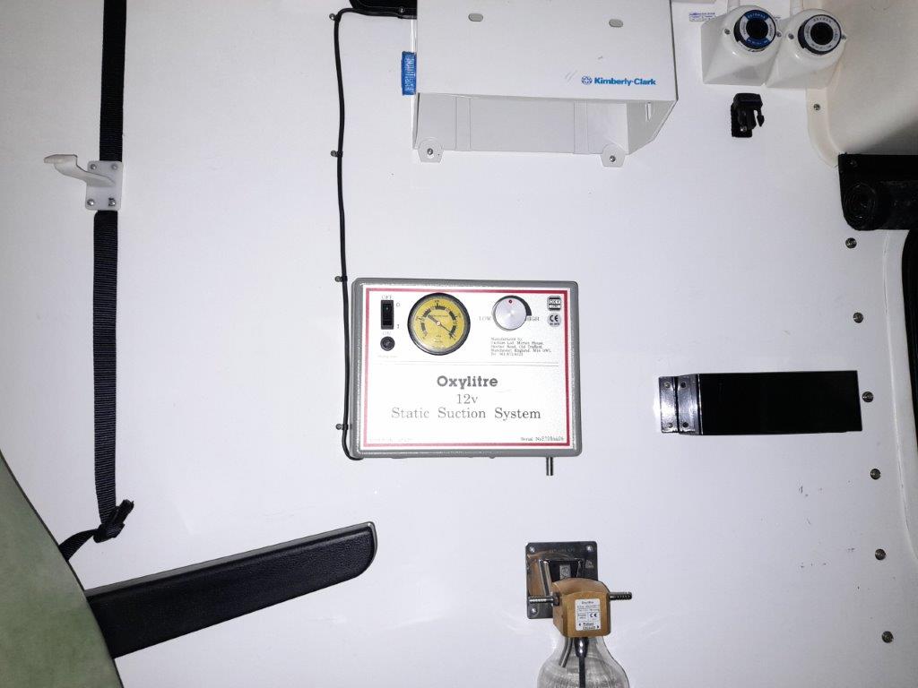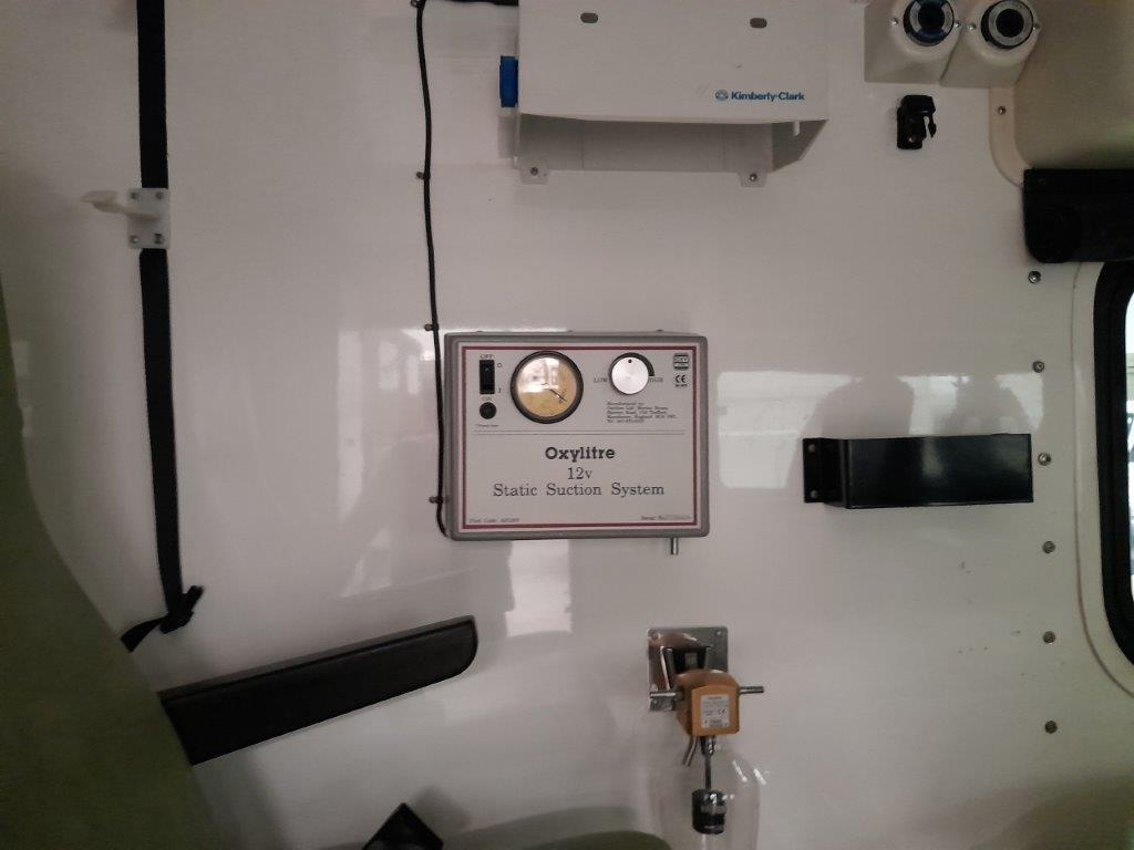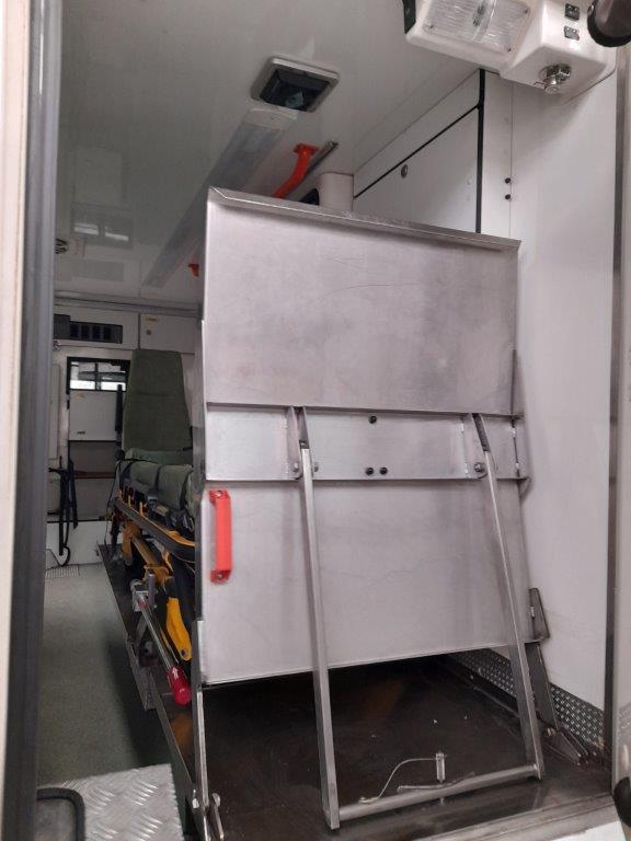 The ambulance body compartment is at the rear and is set out for a single stretcher and up to three attending medics with plenty of storage space as well as being piped for oxygen supply