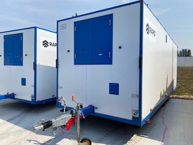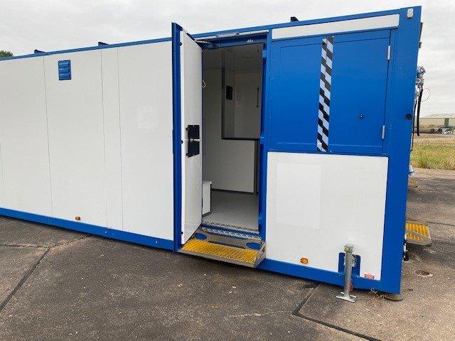 Built on tandem axle fast two trailers the units are incredibly easy to manoeuvre and deploy. The interlinking doors gives a good separation between office space and treatment rooms where necessary.