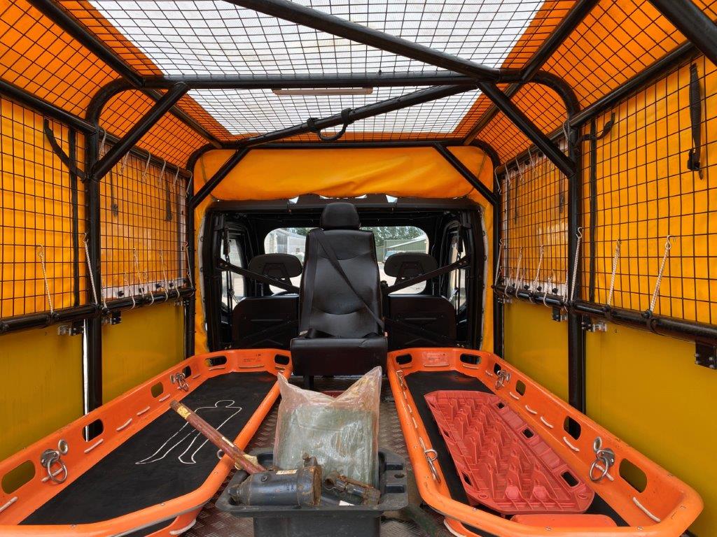 Vehicle has previously been operated by the military as a remote rescue vehicle which includes a drop side cargo body with twin stretchers and a fixed medical seat